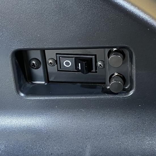 フットスイッチは使いやすさを考えチェア後方に固定しており、長押しでオートセット(UP)、オートリターン(DOWN)、