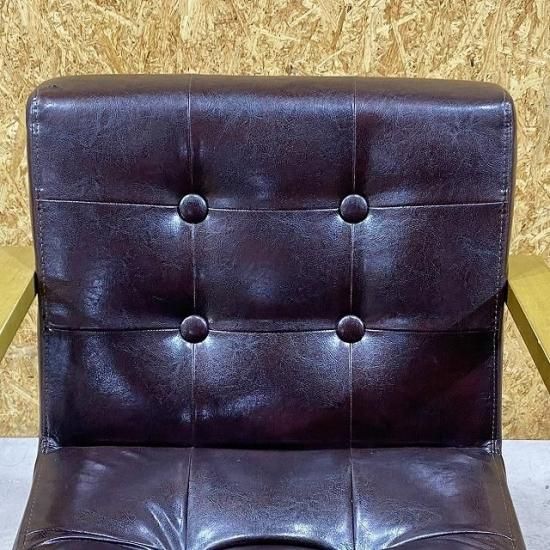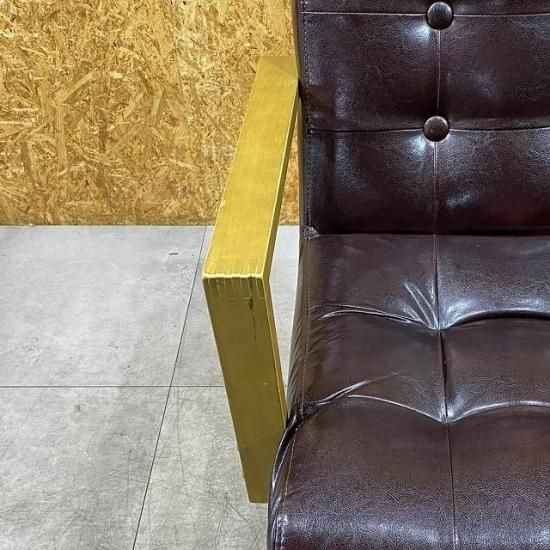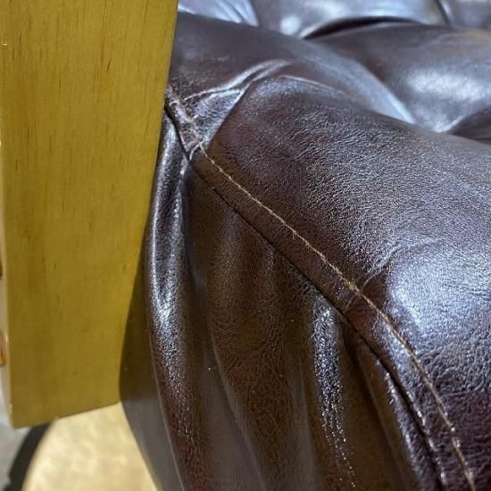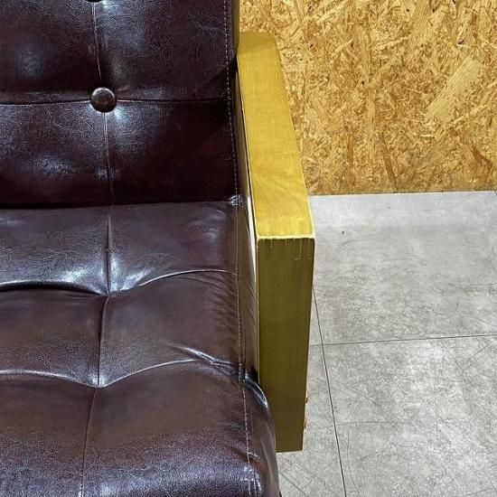 オーク天然木で仕上げたオールドアンティークな肘掛けと、ボタン加工による立体感のあるソファタイプの座面が懐かしい
